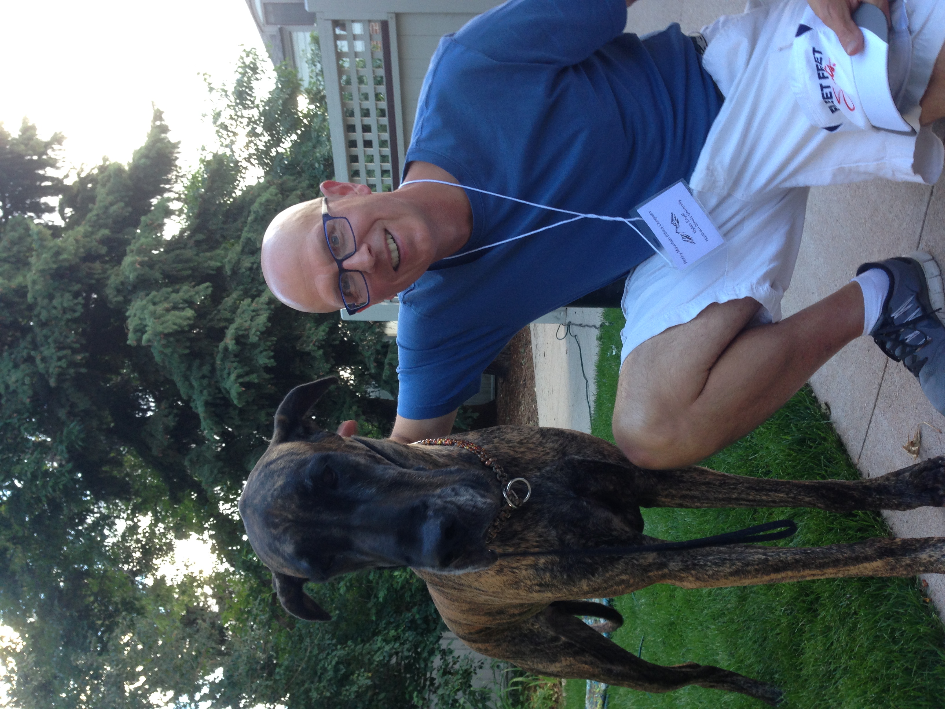 The author, Mylan Engel Jr., with Great Dane Party. Mylan never misses a chance for canine photo op!